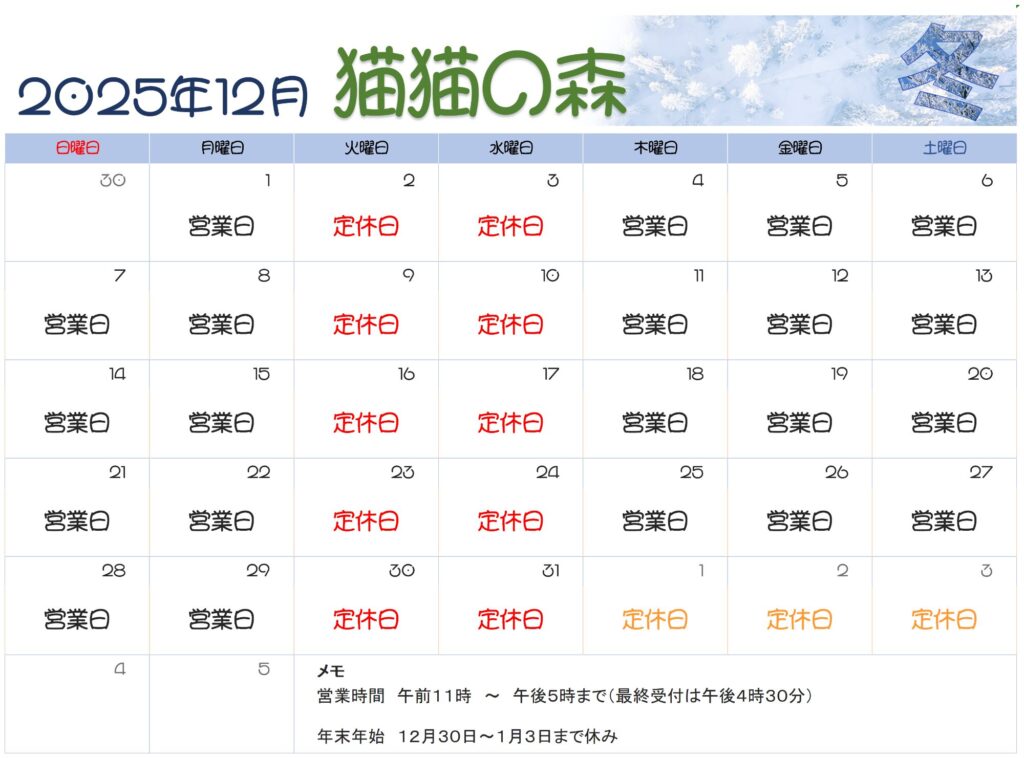 営業カレンダー